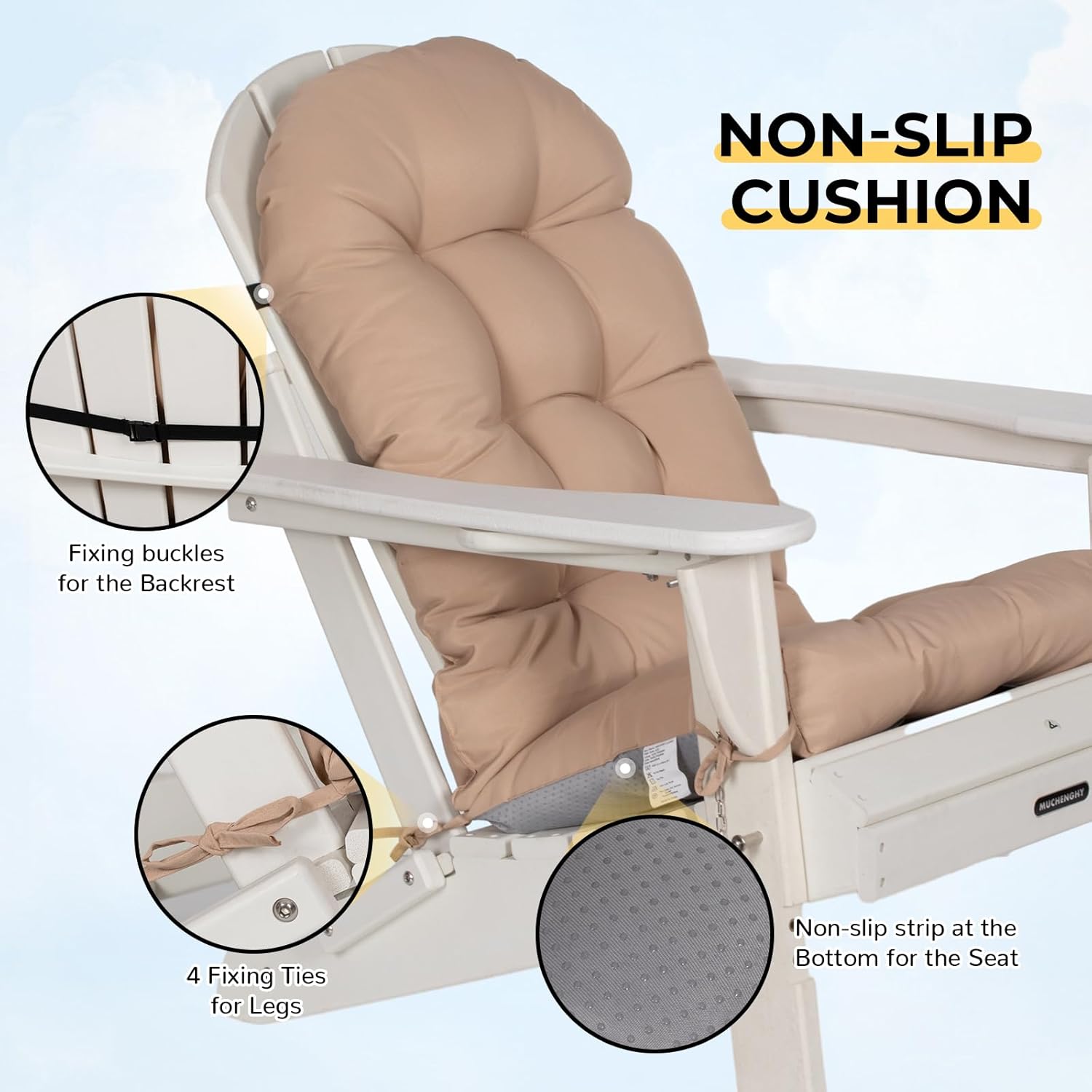 - Soft & High Rebound Material - This cushion is made from 100% waterproof polyester fabric and filled with high-quality PP cotton, which is fast rebound, and not easy to deform. It is shrink and wrinkle resistant, holds its shape even after prolonged use. The ergonomic design makes it more comfortable when you sit on the Adirondack chair.